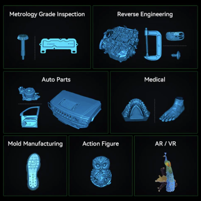 Oba skanery obsługują formaty OBJ, STL oraz PLY, a ich oprogramowanie współpracuje z systemami Windows 10/11 oraz macOS. Zintegrowany system skanowania kolorowego i funkcje IMU zapewniają stabilność i spójność danych przestrzennych.