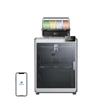 System napędowy z silnikiem krokowym umożliwia drukowanie z prędkością do 600 mm/s przy przyspieszeniu 30 000 mm/s². Pomimo dużej mocy, urządzenie pracuje niezwykle cicho (45 dB). Drukarka jest gotowa do pracy od razu po wyjęciu z opakowania. Wbudowany czytnik RFID automatycznie rozpoznaje filamenty i dobiera optymalne ustawienia druku. Wbudowany moduł Wi-Fi oraz aplikacja Creality Cloud umożliwiają zdalne sterowanie. Creality OS pozwala na inteligentne zarządzanie filamentami, a interfejs FLUIDD WebUI oferuje precyzyjne ustawienia druku. Drukarka obsługuje formaty plików Gcode i 3MF. Wbudowany oczyszczacz powietrza filtruje lotne związki organiczne (VOC), zapewniając bezpieczeństwo użytkowania w pomieszczeniach zamkniętych.